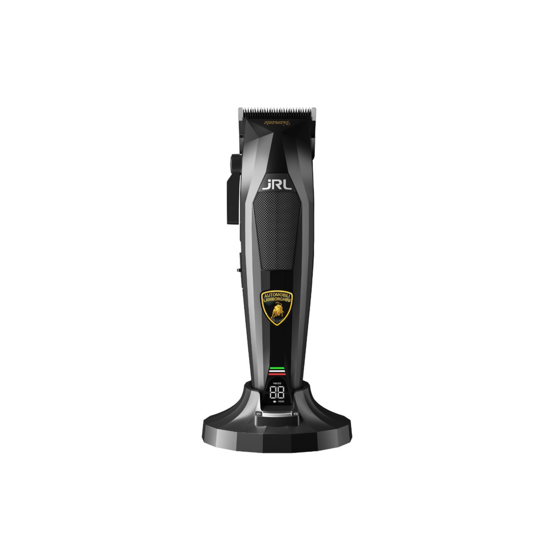 הכירו את JRL x Lamborghini Diamante – סט יוקרתי של מכונת תספורת וטרימר, שנבנה כדי לספק רמה חדשה של מהירות, שליטה ועוצמת חיתוך. נולד משילוב בין החדשנות פורצת הדרך של JRL לבין עיצוב-העל האגדי של Lamborghini, זהו דגם מהדורה מוגבלת שנועד לספרים ולמעצבי שיער מקצועיים שלא מתפשרים על איכות.